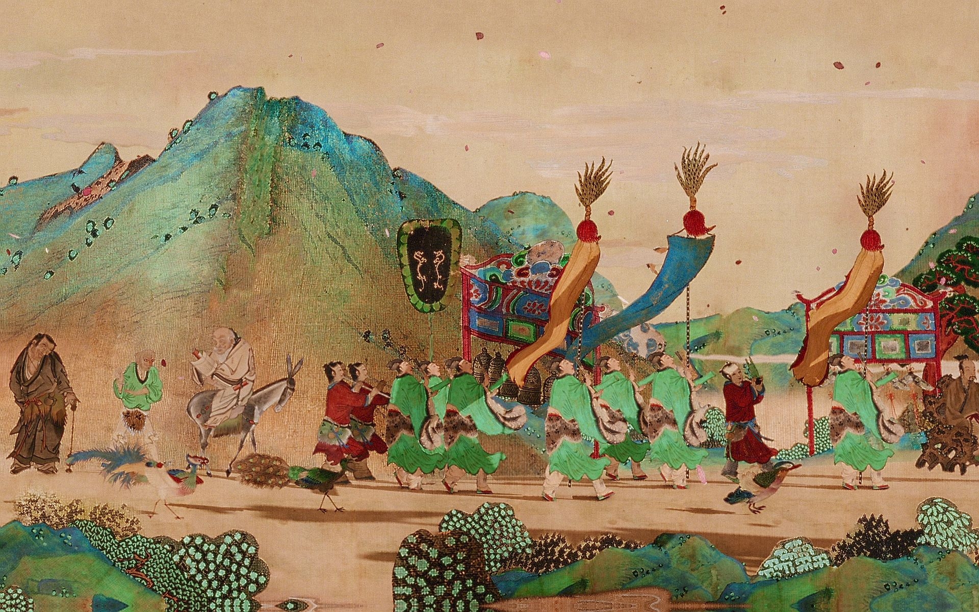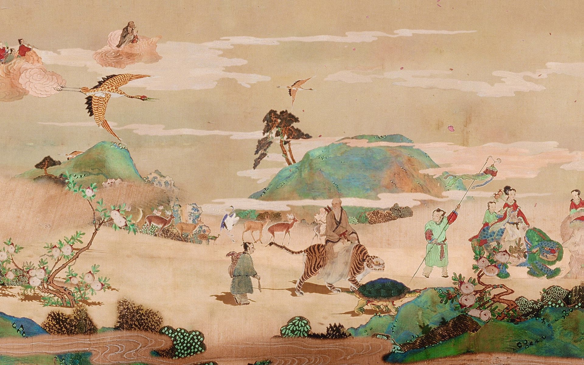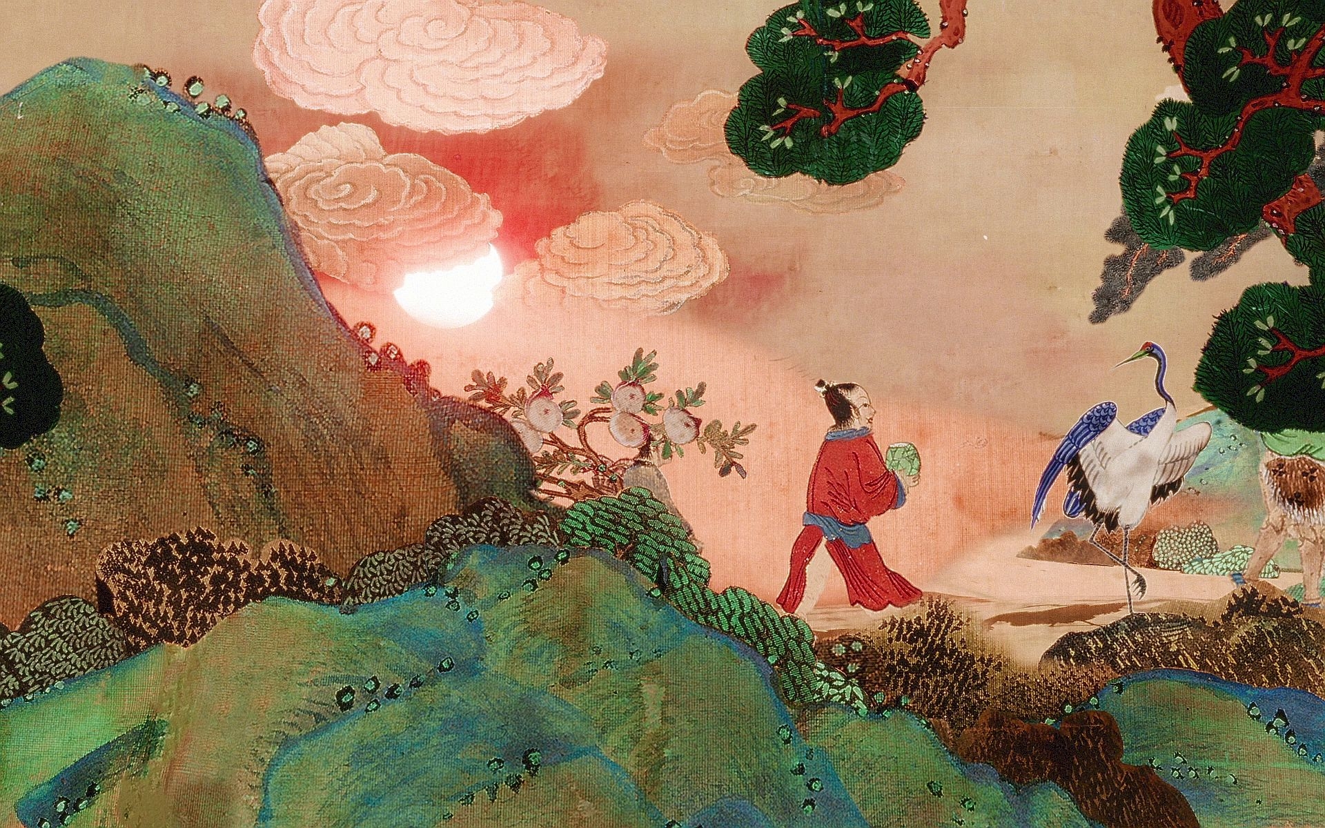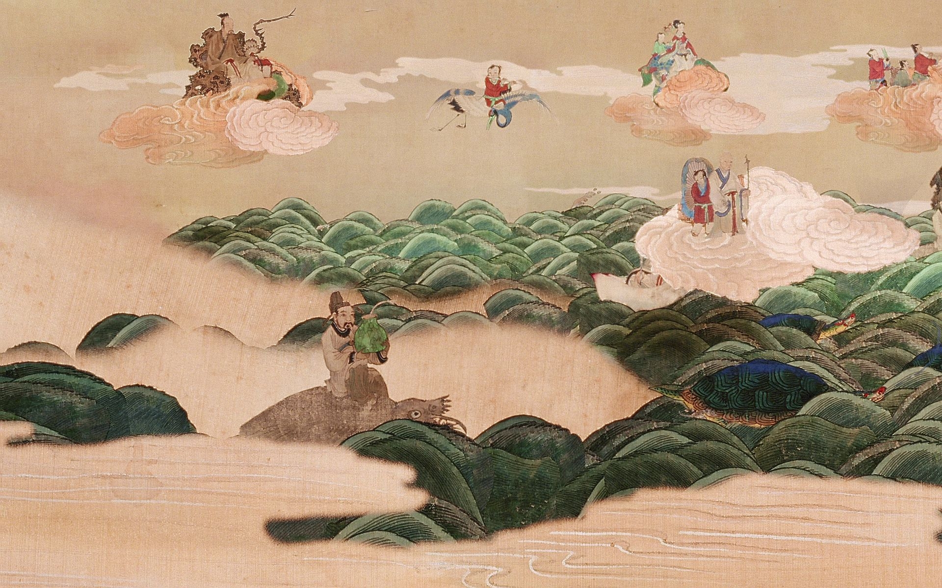 Un collectionneur, assis au milieu de ses oeuvres d'art, entre dans une méditation profonde. Peu à peu, il libère son esprit, entre en transe et plonge dans un rêve eveillé, flottant à traveres vallées et montagnes peuplées d'immortels, d'animaux fantastiques, à travers les nuages et les mers.